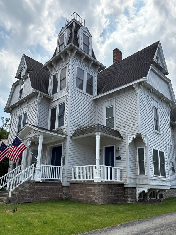 The Crane-Ross home at 117 Main Street was built in 1879 by J.A. Vroom, (a local furniture maker and undertaker), in the Italian Gothic style. It was originally built with seventeen rooms and the lumber used to build it came from the Hoag Lumberyard, just up the street at 130 Main Street.